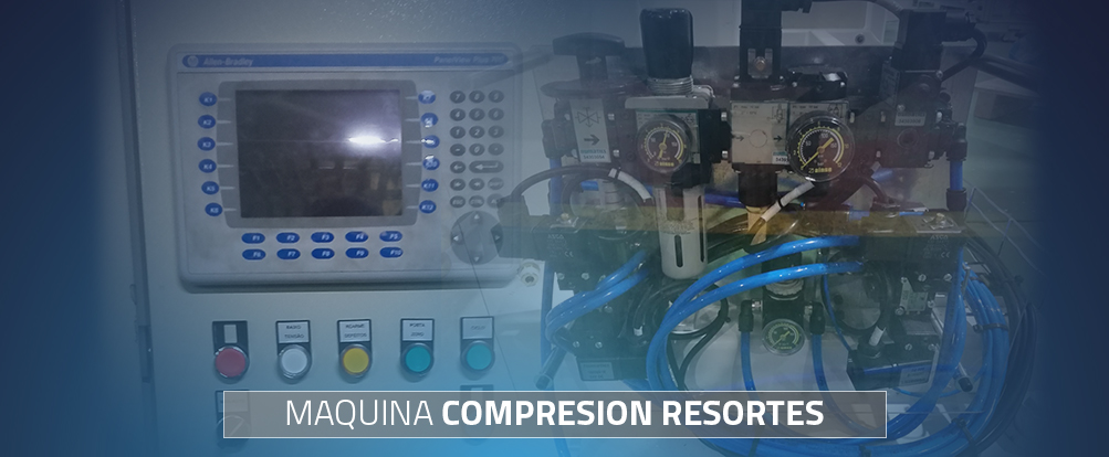 La prensa de resortes está gobernada por un autómata Rockwell de la serie L32E v20. Dicho autómata está situado en el armario de la máquina en el que también se encuentran las alimentaciones eléctricas, elementos de seguridad, así como la red Devicenet para la comunicación con la periferia distribuida ( point I/O) y una red ethernet que permitirá la comunicación con el panel de operador y el autómata. La instalación tiene por objeto la compresión de los resortes. Para ello será necesario comprimir las piezas mediante un cilindro, a continuación se atornillarán utilizando una atornilladora manual y finalmente las piezas serán sometidas a una segunda compresión.